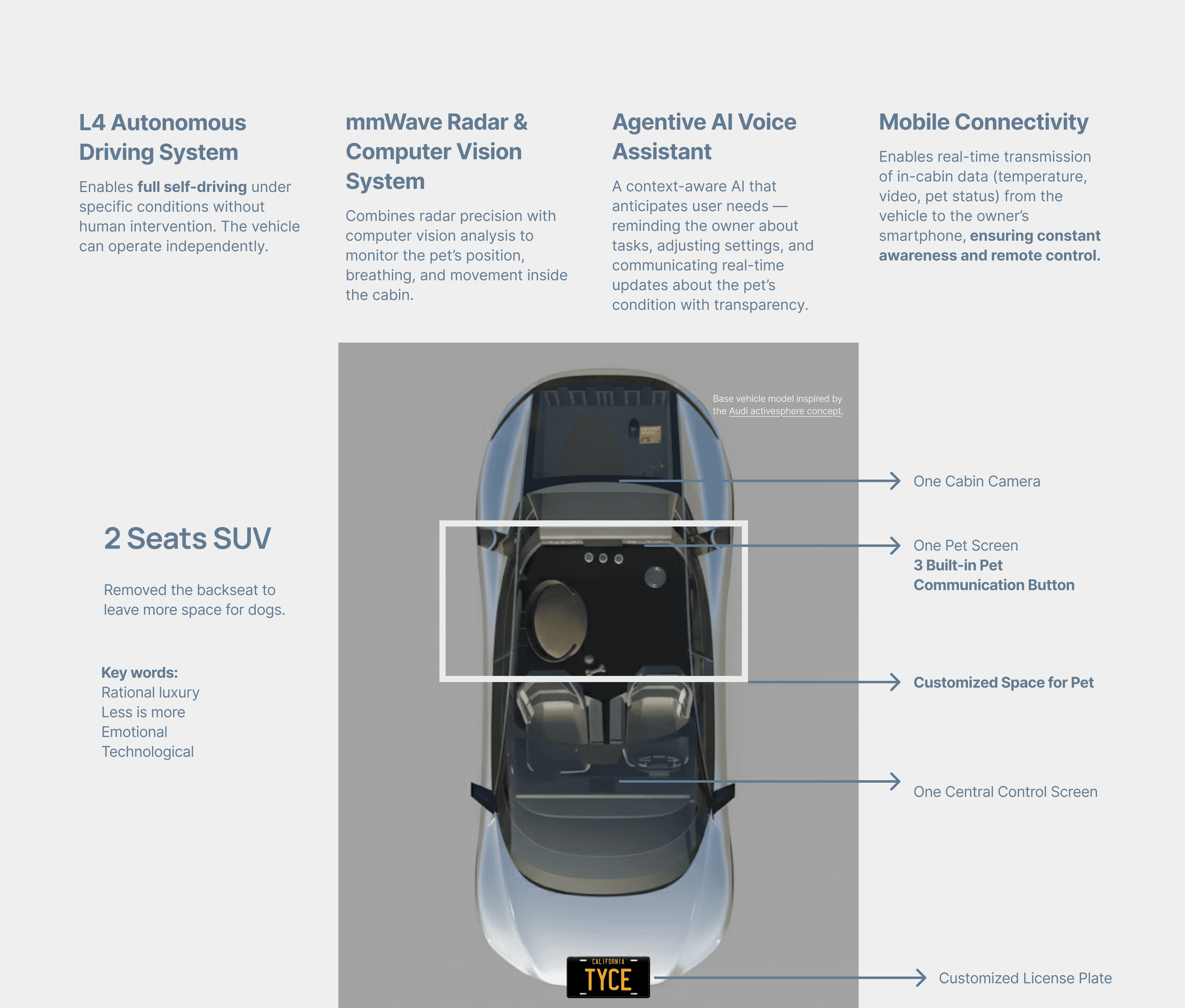 This concept vehicle is designed as a pet-first L4 autonomous cabin where treating the dog as an active passenger, not cargo.