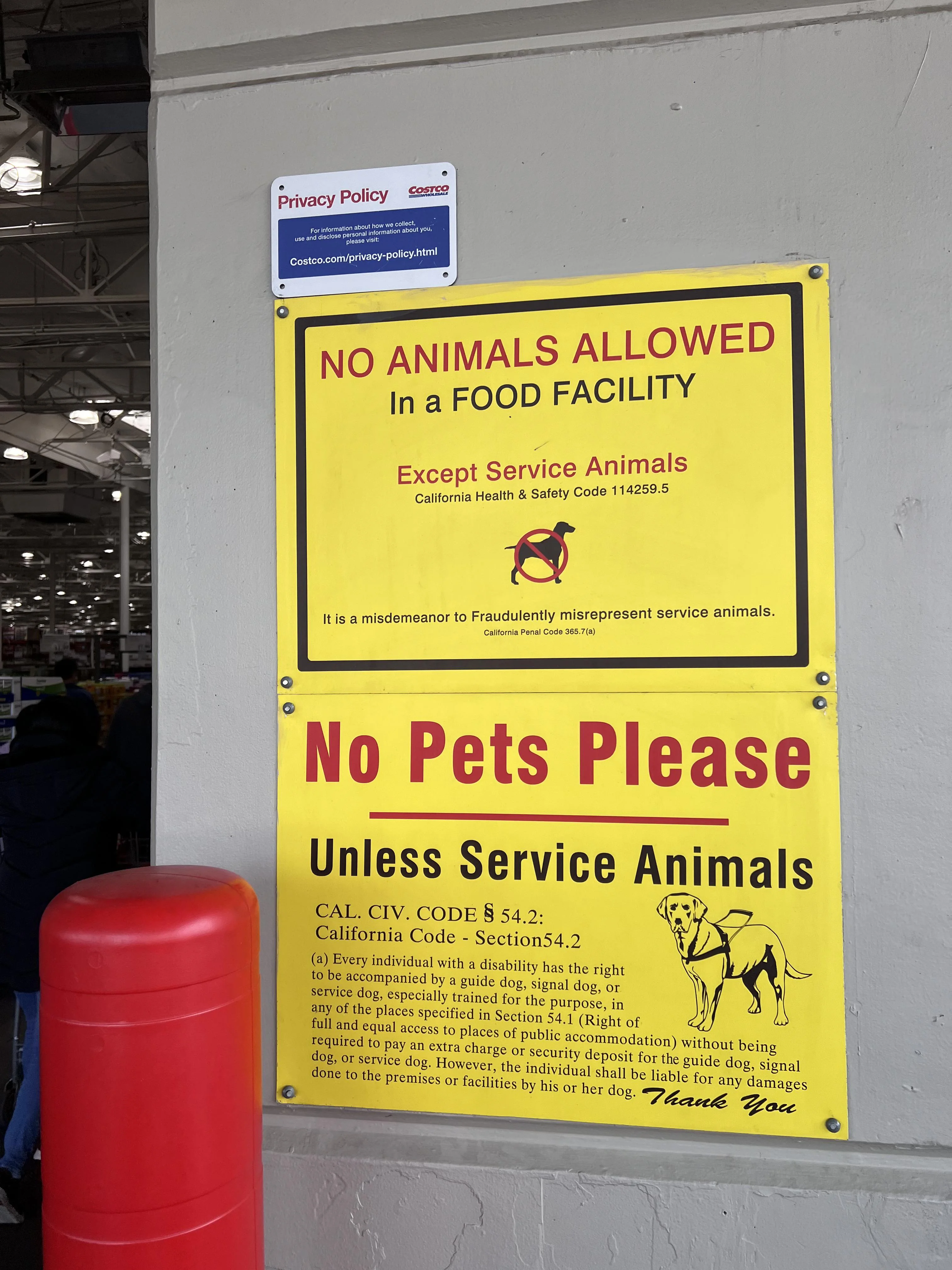 In the U.S., most pets are not legally allowed to enter public places like stores, hotels, or public transportation. Only service animals(emotional support animals are not include) are legally protected under the ADA.